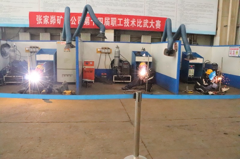 電焊工比武時,焊花飛舞,弧光閃爍。伴著“吱吱”飛濺的焊花,焊機隆隆的轟鳴聲,焊槍噴吐的耀眼淡藍色光芒,一件件精美的成品工件漸漸成型。