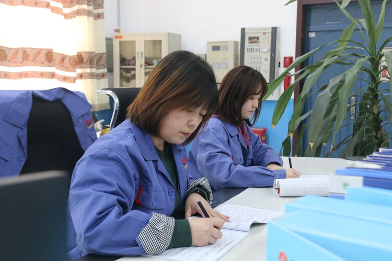學(xué)習(xí)過程中難免有見解不同的時(shí)候,這個(gè)時(shí)候,她們每個(gè)人都做好自己的學(xué)習(xí)筆記,找到技術(shù)員以及公司機(jī)電技術(shù)專業(yè)人員請(qǐng)教。一有時(shí)間,她們對(duì)照操作規(guī)程、設(shè)備說明書,邊學(xué)、邊看、邊記,一遍遍地摸索熟悉、一遍遍地鞏固練習(xí)。隨著時(shí)間的推移,主控臺(tái)上擺的是業(yè)務(wù)教材和學(xué)習(xí)筆記起了褶皺,一本本設(shè)備說明書上畫滿了各種顏色的標(biāo)記。