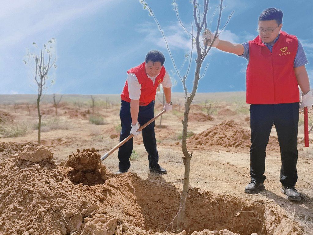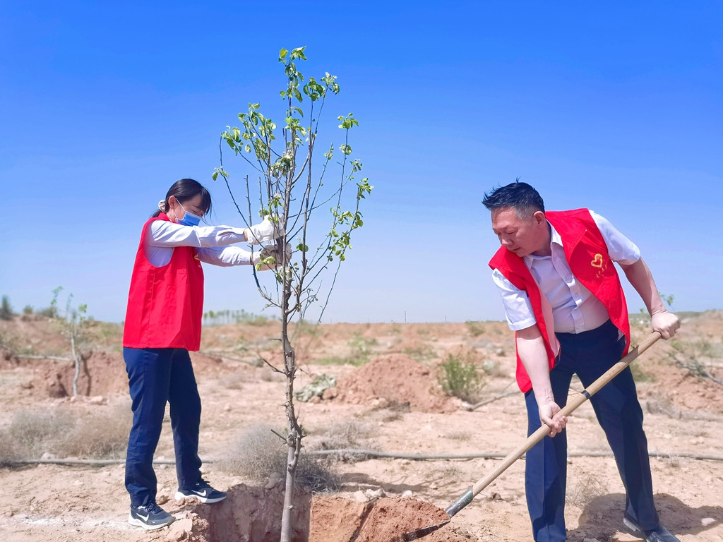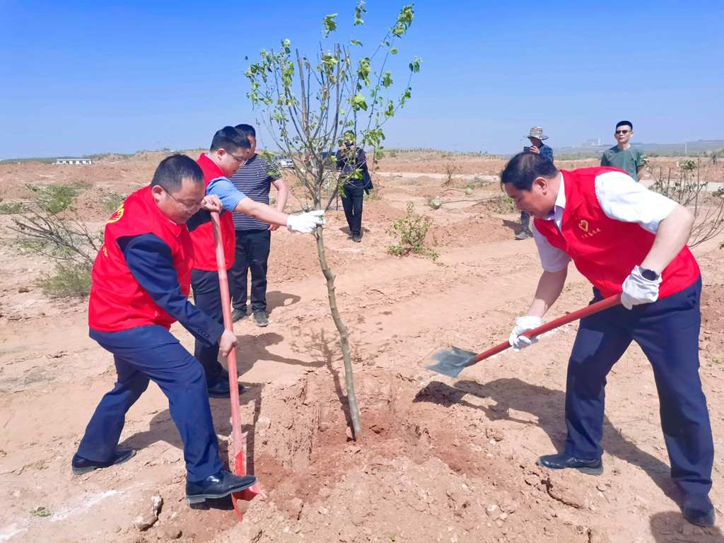 活動當天,黨員們身著統一的服裝,手持鐵鍬、戴上勞動手套,在公司采煤沉陷區的立體式生態修復示范基地集結。在簡短的動員儀式后,大家迅速投入到植樹勞動中。黨員們分工合作,有的挖坑培土,有的扶苗澆水,還有的負責現場秩序維護和后勤保障。在大家的共同努力下,一棵棵樹苗被穩穩地植入土中,為大地增添了新的生機與活力。
