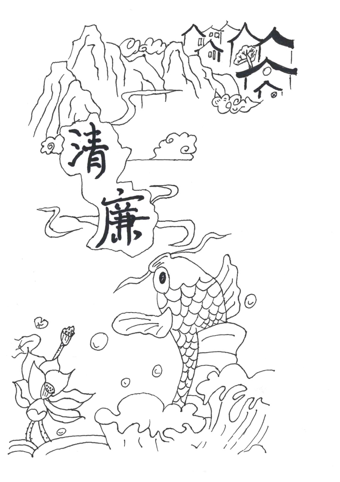廉、清廉 -- 水彩硬筆和鋼筆畫