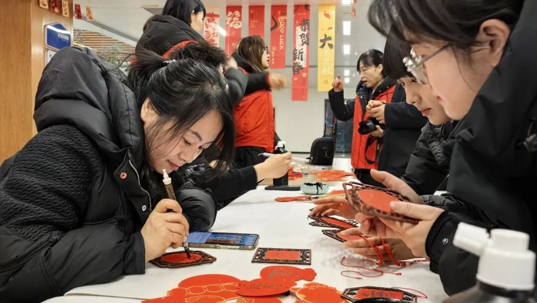 活動還特設有“DIY創意區”,提供空白對聯、扇面和各式各樣新春吊牌,邀請有需求和愛好的職工及家屬小朋友自行拿毛筆手工書寫制作,讓大家沉浸式感受傳統文化的藝術魅力。