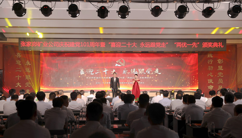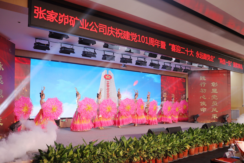 典禮在喜慶歡快的開場舞《騰飛張家峁》中拉開帷幕。公司黨委副書記、總經理呼少平在典禮上致辭。他指出,在中國共產黨的正確領導下,今年上半年,公司安全工作總體平穩,生產任務圓滿完成,黨史學習教育成效顯著,經營管理、生態環保取得新進展,智能化建設邁出新步伐,順利完成了各項工作任務。下半年,公司各級黨組織及廣大黨員干部一是要做到初心如磐,行而不輟,將黨建工作與生產經營高度融合。二是要使命在肩,擔當有為,將新發展理念融入公司高質量發展中,構建智能柔性生產管控體系,智領未來,再創輝煌。三是要敢為人先,勇立潮頭,在“雙碳”戰略指導下,打好污染防治攻堅戰,持續推進“雙碳”礦區建設,實現智能低碳高質量發展目標。