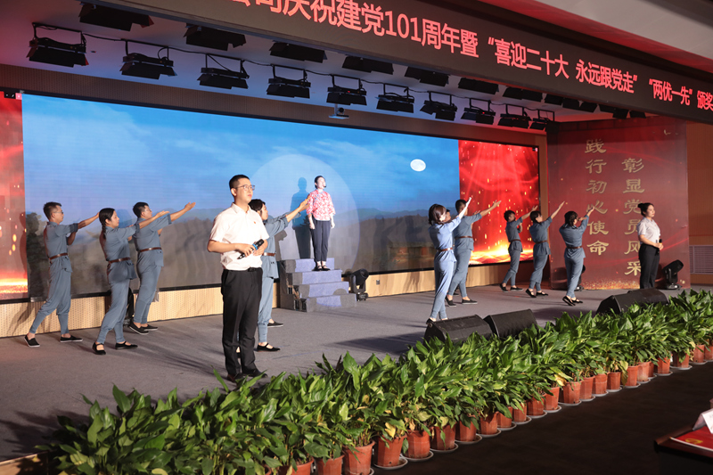歡歌迎盛會,真情頌黨恩。6月28日晚,公司在智慧中心五樓會議室舉辦慶祝建黨101周年暨“喜迎二十大 永遠跟黨走”“兩優一先”表彰頒獎典禮。公司在家領導,受表彰的先進集體代表和先進個人,以及來自各條戰線上的180余名黨員、職工、新入職大學生參加了典禮。