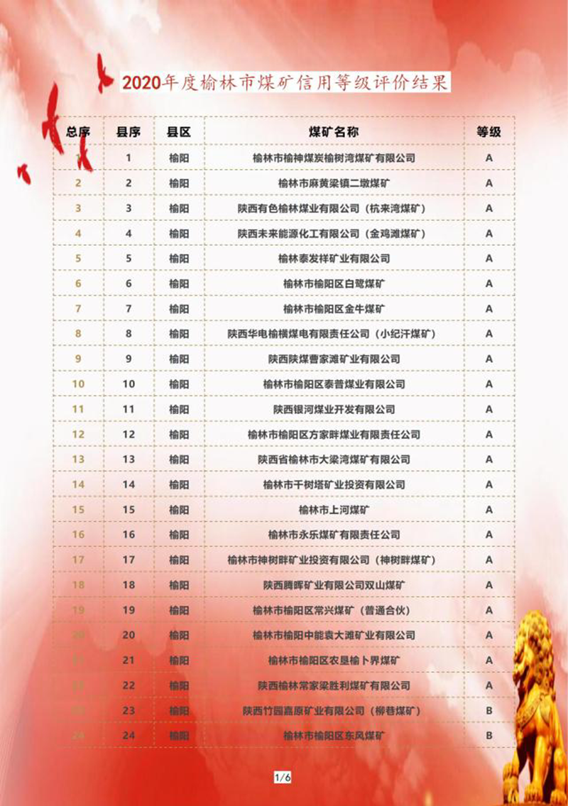 公司:喜獲2020年度榆林市煤礦信用等級A級單位