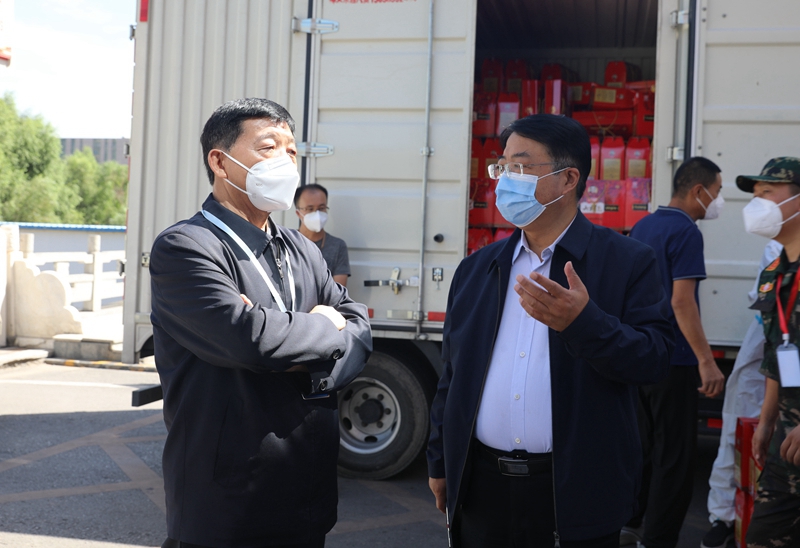 8月31日,神木市疫情防控關(guān)心關(guān)愛組執(zhí)行組長(zhǎng)王外斌來到公司,走訪慰問公司疫情防控一線工作人員,督導(dǎo)檢查公司疫情防控、安全生產(chǎn)等工作。公司黨委書記、董事長(zhǎng)張建安,黨委副書記、總經(jīng)理呼少平等在家領(lǐng)導(dǎo)、綜合辦公室、后勤服務(wù)中心負(fù)責(zé)人等陪同。