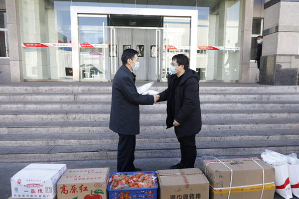 2月3日,陜北礦業公司領導郭佐寧、遲寶鎖帶領機關相關部門負責人到公司看望慰問勞動模范、困難黨員和困難職工,并為基層一線職工送去了蘋果、瓜子、消毒濕巾、口罩等慰問品,向他們致以新春的問候和祝福。