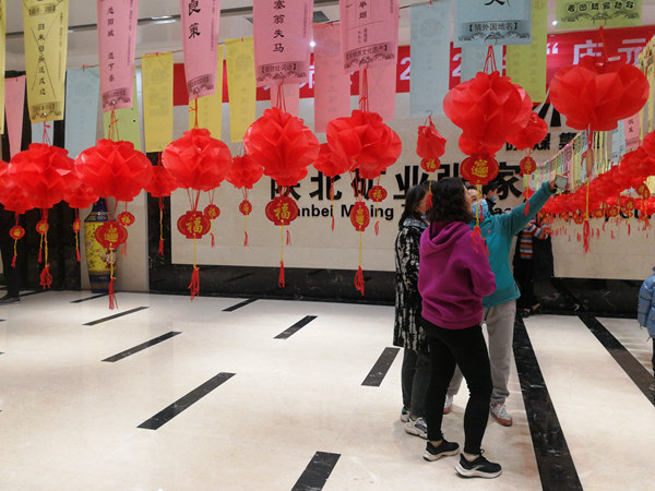 張家峁礦業(yè)公司工會(huì)購(gòu)買(mǎi)洗頭膏、皂粉、牙膏、洗衣液等各式各樣的生活小禮品作為活動(dòng)獎(jiǎng)品。在活動(dòng)前夕還組織人員用大紅燈籠、彩綢、福字、花卉及文化牌版對(duì)一樓大廳進(jìn)行裝飾,將文體中心點(diǎn)綴的五彩繽紛、喜氣洋洋,營(yíng)造出一種溫暖祥和、和諧雅致的喜慶氛圍。