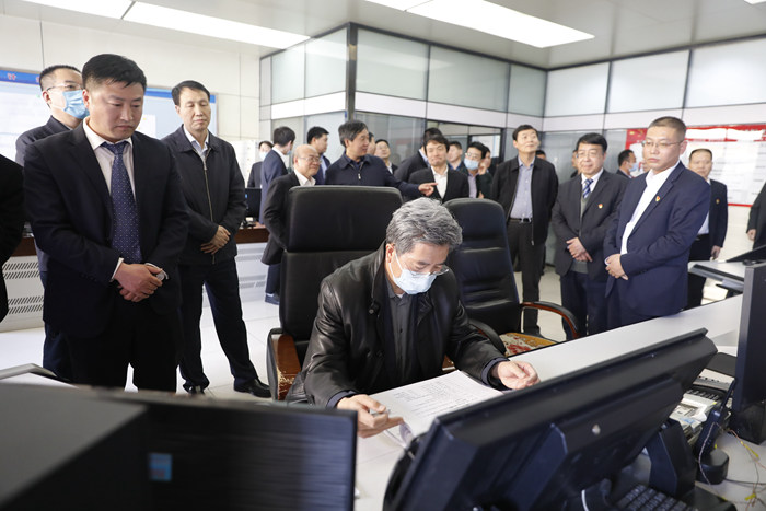 檢查過程中,王世斌向各級領導介紹了陜煤集團煤炭板塊安全生產、智能煤礦建設等工作。郭佐寧現場介紹了張家峁公司智能化工作進展,以及全生產鏈運行情況。