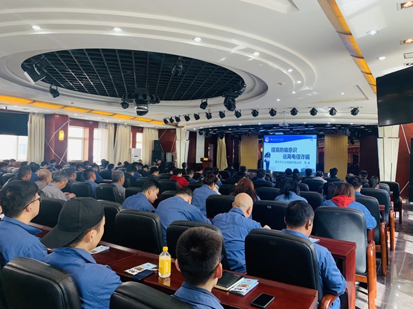 為進一步增強廣大職工的安全防范意識,有效遏制電信網絡詐騙案件的發生,保障職工的財產安全。4月28日,公司特邀神木市濱河新區派出所賀警官在培訓樓多功能廳為150余名職工開展了反電信網絡詐騙宣傳知識講座。
