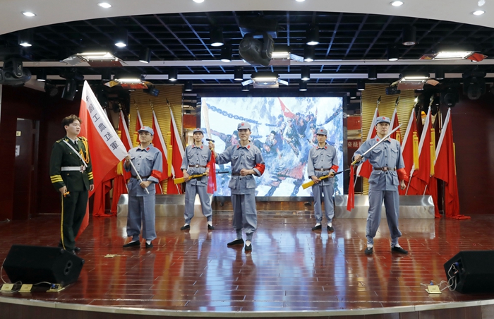 “美哉!我少年中國,與天不老!壯哉!我中國少年,與國無疆……”誦讀比賽在水電暖隊團支部帶來的《少年中國說》中拉開了序幕,接著,《一個蘋果》《心中的旗幟》等10個節目輪番登場,誦讀者以舞蹈、歌曲、詩朗誦、情景演繹等多種形式亮相,聲情并茂地將一個個紅色經典故事娓娓道來,讓現場觀眾感同身受、心潮澎湃,不時掌聲雷動。
