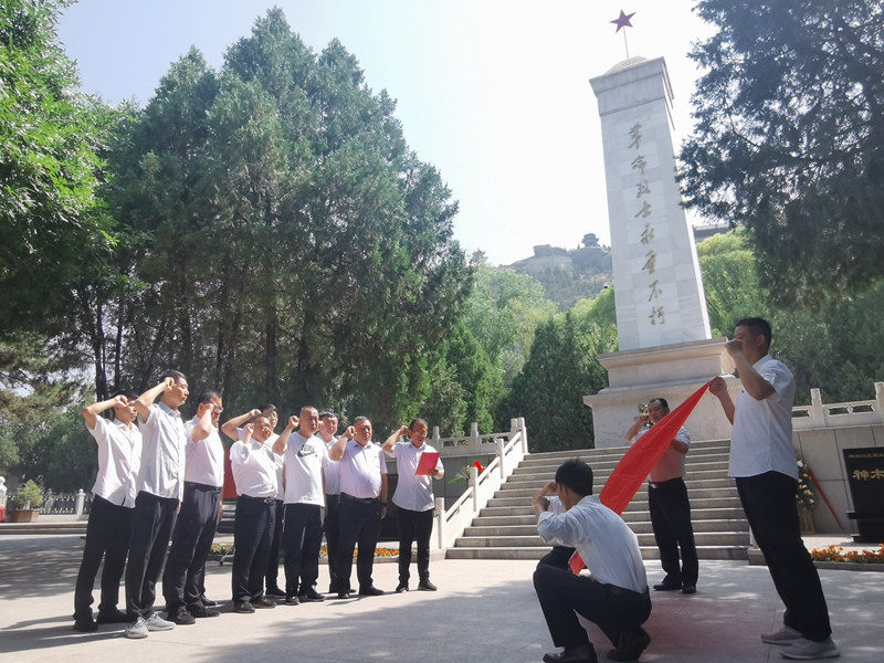 在神府革命烈士紀念碑前,銷售中心全體黨員重溫入黨誓詞,以錚錚誓言向英烈們致敬。