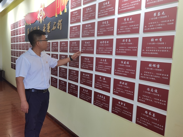 在紀念館,黨員聶煒煒看著墻上那一串串陌生又熟悉的名字,忍不住潸然淚下,輕輕撫摸著那一串串熟悉的名字他哽咽著說道“看看這些同志,犧牲的時候也就三十歲左右,他們還很年輕呀”。