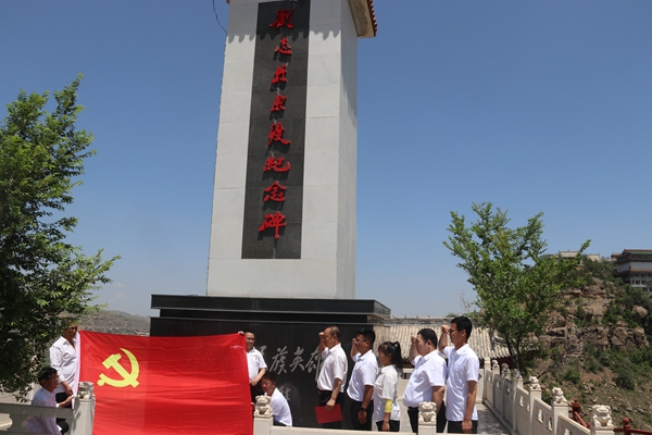 黨員們在革命烈士劉志丹紀念碑前默哀致敬,隨后在黨支部書記帶領下,面對鮮紅的黨旗再一次舉起右拳,重溫入黨誓詞。那一句句鏗鏘有力的誓言在紀念館上空回蕩,那一字字錚錚誓言表達了他們對黨的無限忠誠。