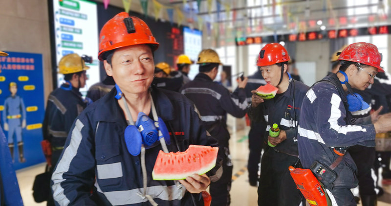 正午時(shí)分,天氣正當(dāng)炎熱,青年志愿者們先后來(lái)到公司機(jī)修車間、35KV變電所、輔運(yùn)隊(duì)、水處理車間、選煤廠、磅房、救護(hù)中隊(duì)等處,為堅(jiān)守在工作崗位上的礦工兄弟送上電風(fēng)扇、飲料、西瓜、綠茶、防暑降溫手冊(cè)等“清涼套餐”,給高溫下的勞動(dòng)者帶來(lái)了絲絲清涼和縷縷溫情。在井口,志愿者們將切好的西瓜、綠茶和礦泉水送到準(zhǔn)備入井和剛剛升井的一線職工手中,并親切地叮囑大家一定要注意身體,做好防暑降溫,在崗位上要注意安全,嚴(yán)格按照規(guī)章制度進(jìn)行規(guī)范作業(yè),把好“安全關(guān)”。
