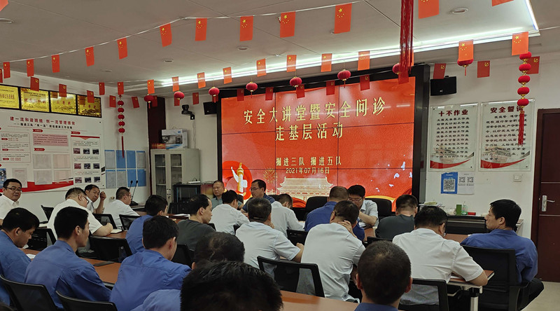 為切實抓好建黨百年華誕期間的安全生產管理工作,按照公司黨史學習教育“學黨史,悟思想,辦實事、開新局”總體安排,7月16日下午,公司領導呼少平、高彬、李文俊、關有利、薛忠新、胡儉,以及相關部門負責人一行深入掘進三隊開展了五職礦長“解難題、辦實事、保安全”安全生產問診走基層活動,面對面了解職工工作情況,傾聽基層所思所盼。