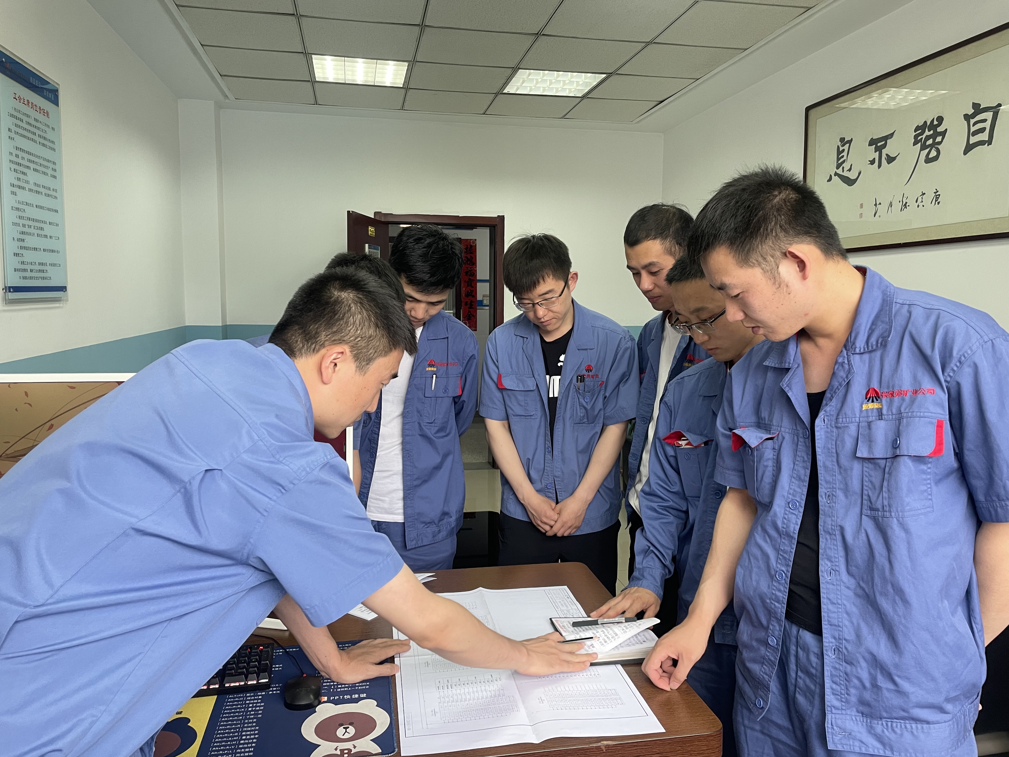 10月1日,升旗儀式結束后,機運隊隊長邵海洋帶領班組成員列隊整齊走向井口方向。公司智能化建設成果交流推廣會召開在即,根據公司統一安排部署,機運隊主要負責2-2煤膠帶輸送機機頭標準化工作。針對此次現場會時間緊、任務重等特點,邵海洋對各班組進行了任務分解,明確了分工,逐項任務明確了責任人、保障措施與完成時限,做到了人人心中有指標、人人心中有任務。