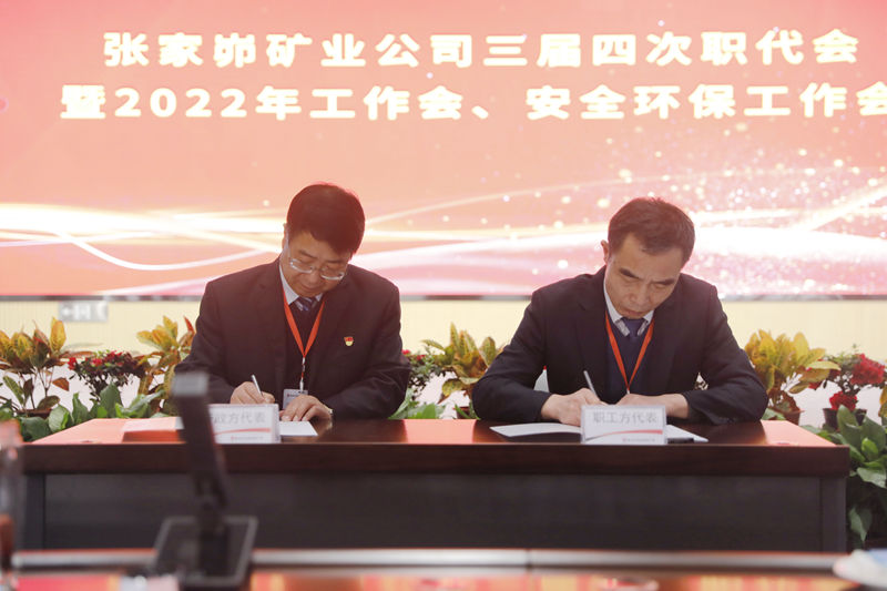 下午14時(shí),舉行了第二次全體會(huì)議,會(huì)議由公司黨委副書(shū)記張寬主持。會(huì)上聽(tīng)取了公司領(lǐng)導(dǎo)班子述職述廉報(bào)告;民主評(píng)議了公司領(lǐng)導(dǎo)班子、班子成員及礦長(zhǎng)安全承諾兌現(xiàn)情況;表決通過(guò)了大會(huì)決議;表彰獎(jiǎng)勵(lì)了2021年度先進(jìn)集體和先進(jìn)個(gè)人;公司行政方代表張建安和職工方代表羅榮科分別簽訂了《集體合同》《女職工專(zhuān)項(xiàng)集體合同》;公司領(lǐng)導(dǎo)與各分管單位負(fù)責(zé)人分別簽訂了《2022年目標(biāo)管理責(zé)任書(shū)》和《2022年安全目標(biāo)責(zé)任書(shū)》;勞模代表向大會(huì)發(fā)出倡議,號(hào)召全體職工勇立潮頭,真抓實(shí)干,努力成為公司智慧煤礦建設(shè)的踐行者,新時(shí)代改革創(chuàng)新的實(shí)踐者,高質(zhì)量發(fā)展的奮進(jìn)者,在公司智能低碳高質(zhì)量發(fā)展的征程上再展新作為,再創(chuàng)新輝煌!