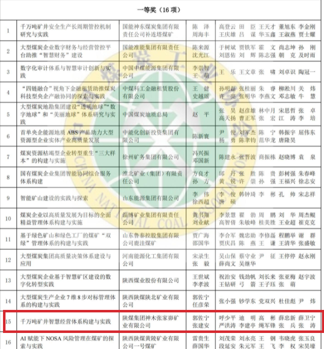 日前,中國煤炭工業協會“2021年煤炭企業管理現代化創新成果獎”評審結果正式公布,公司共3項管理創新成果獲獎,其中一等獎1項、三等獎2項。