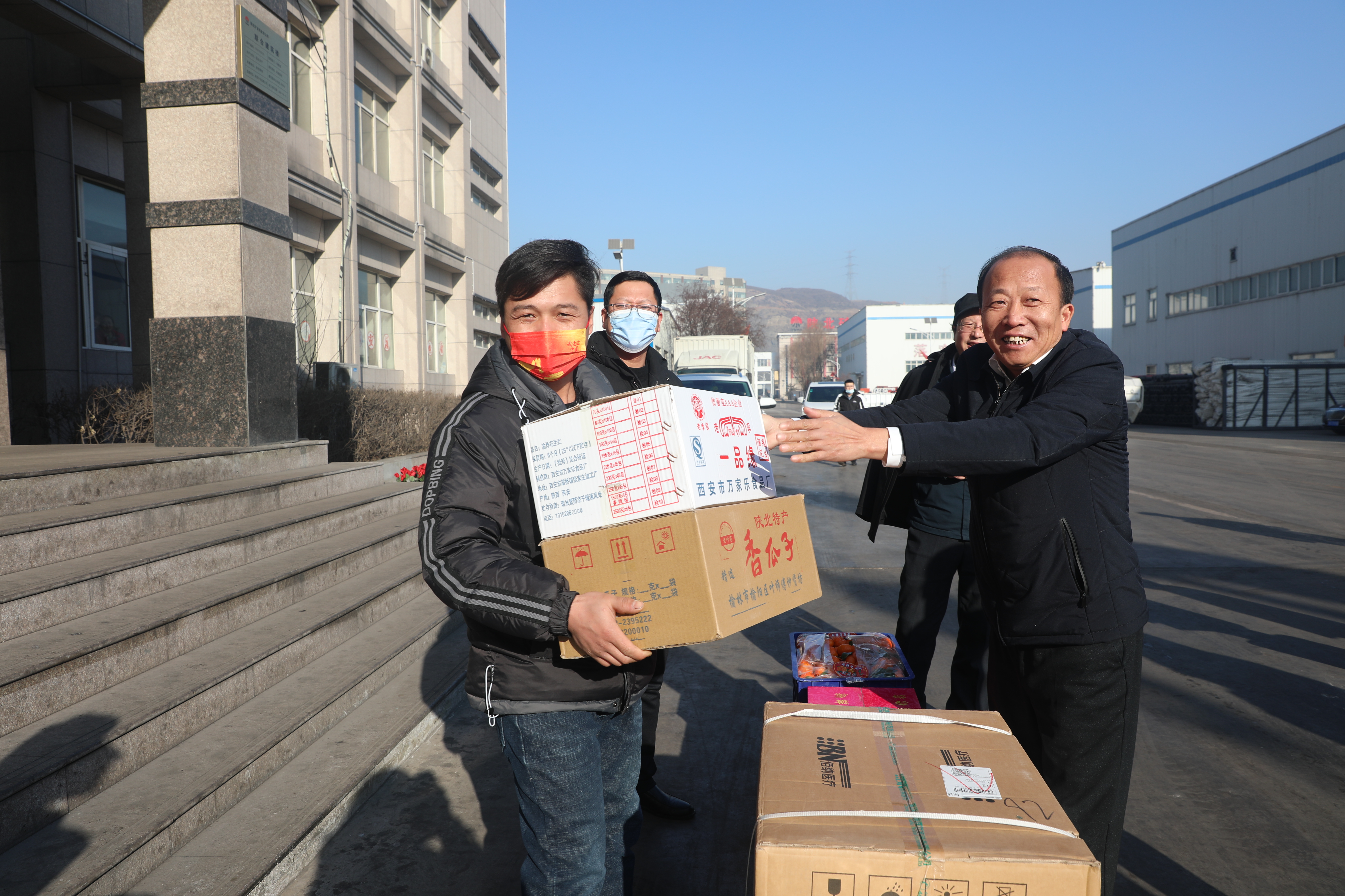 遲寶鎖、劉興民、時亞民首先來到聯建樓,為一線職工送去了蘋果、橘子、防護口罩等慰問品及防疫物資,并轉達了陜北礦業公司黨政工對廣大干部職工的節日問候和美好祝福。