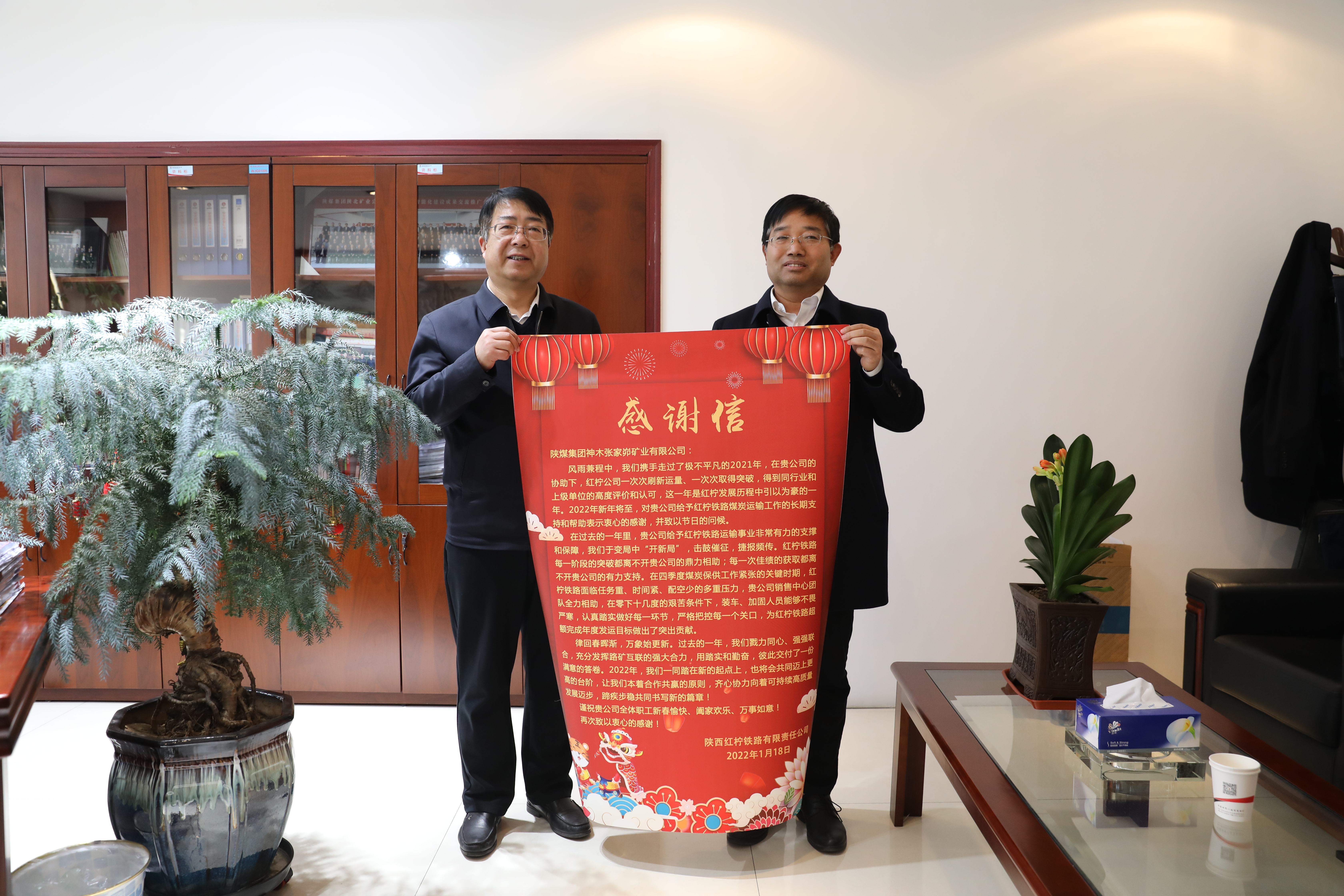 1月18日,陜西紅檸鐵路有限責(zé)任公司為公司送來感謝信,對公司在過去的一年里給予的支撐和保障表示感謝。