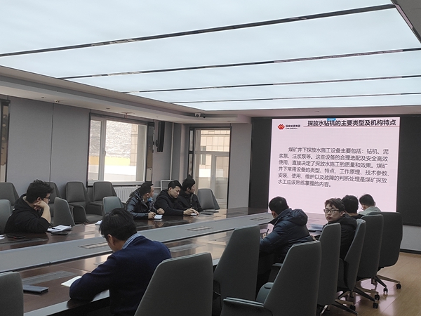 為切實(shí)提高作業(yè)水平,該隊(duì)特別邀請(qǐng)神南培訓(xùn)中心張廣鴻老師進(jìn)行專項(xiàng)培訓(xùn),主要講解了探放水工基本知識(shí),煤巖性的辨別、鉆進(jìn)角度偏移的原因及糾正、原始資料的收集進(jìn)行了系統(tǒng)的交流講解,并簡(jiǎn)要地介紹了鉆孔軌跡測(cè)量,定向鉆進(jìn)等新技術(shù)新裝備,以及井下現(xiàn)場(chǎng)作業(yè)注意事項(xiàng)等,播放了相關(guān)專業(yè)安全警示教育片,在課堂上和大家面對(duì)面找問(wèn)題、說(shuō)隱患,學(xué)習(xí)氛圍積極輕松。