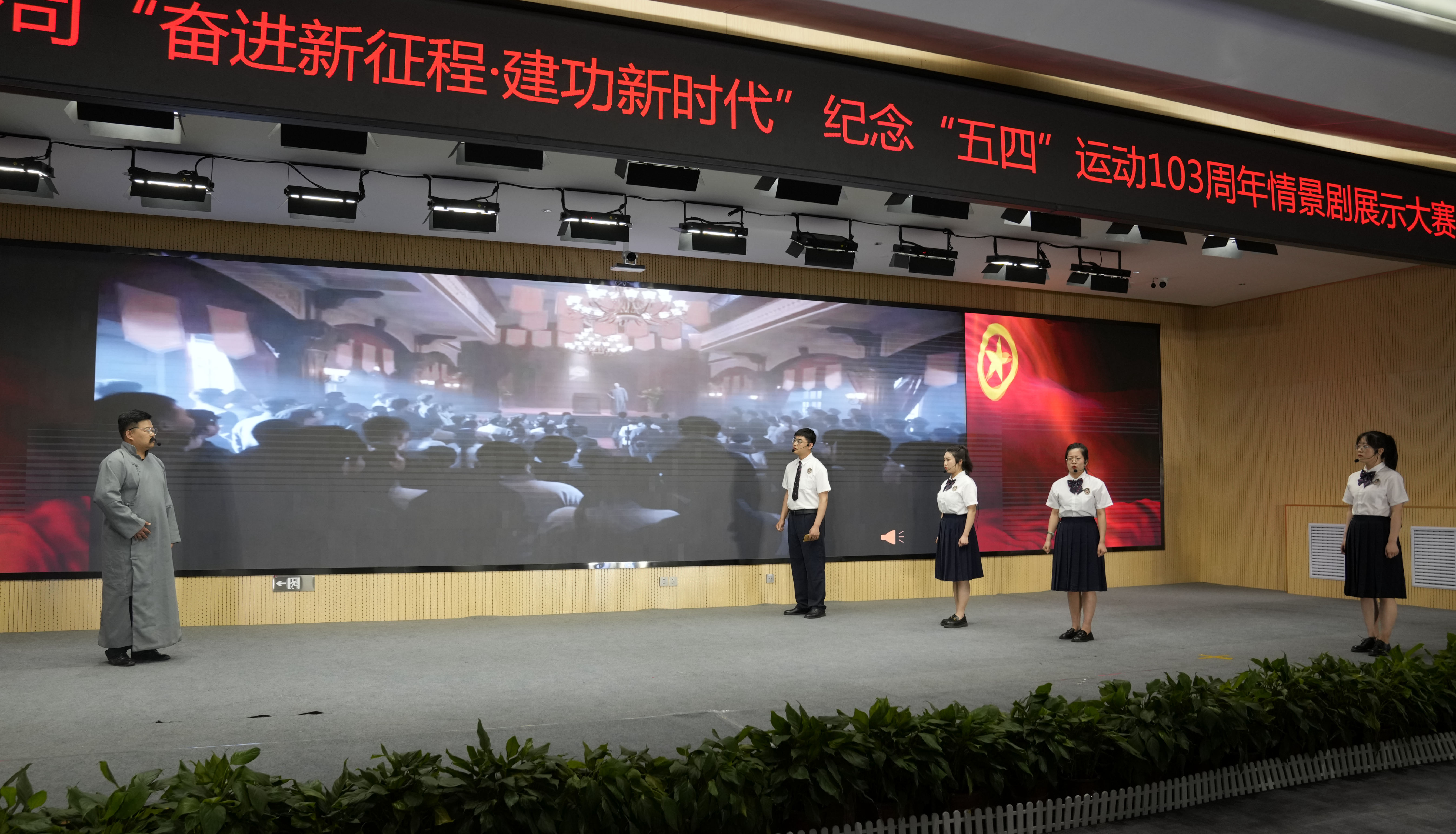 “翻開五月的日歷,我們仿佛聽見,那激越高昂的呼聲。103年的時光隧道,正清晰地響在耳邊……”4月29日,伴隨著青春的氣息和鏗鏘的聲音,公司“奮進新征程 建功新時代”紀念“五四”運動103周年情景劇展示大賽在智慧大樓活動中心拉開帷幕。來自基層的13個團支部紛紛登臺展示青春風采,回望五四奮斗歲月,歌頌黨的偉大成就。