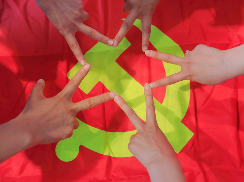 七月,我與黨旗合個影